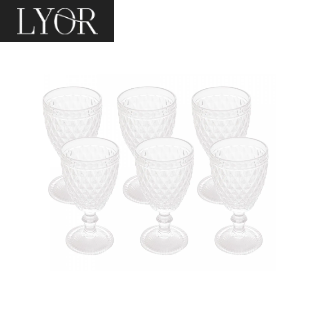 Contém: 6 Taças de 325ml de 9cm x 9cm x 16,5cm espessura 3Mm - Bojo 90Mm - Boca 8cm - Base 80Mm - Haste 5cm